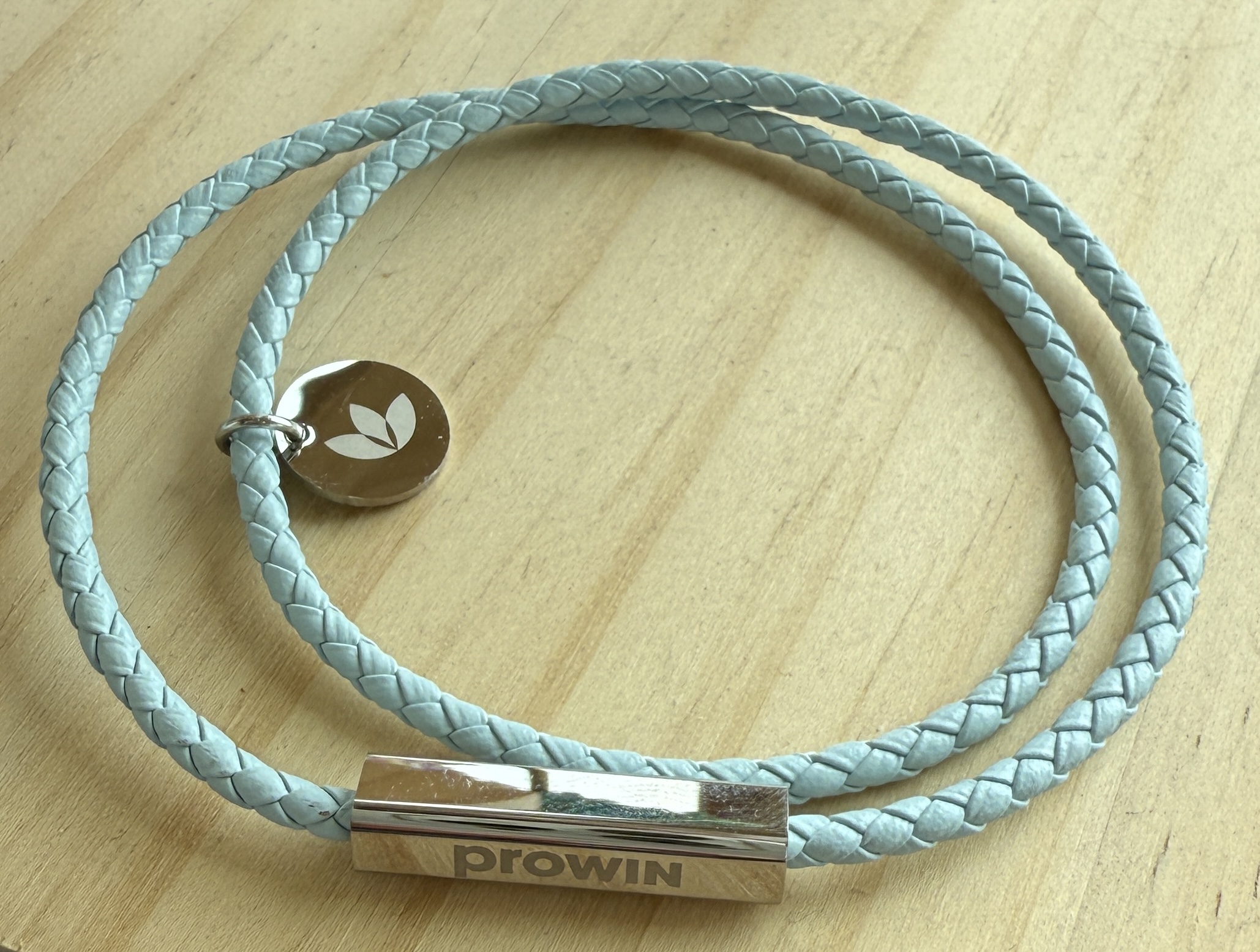 Armband Hellblau mit Anhänger proWIN Logo und Magnetschließe in silber